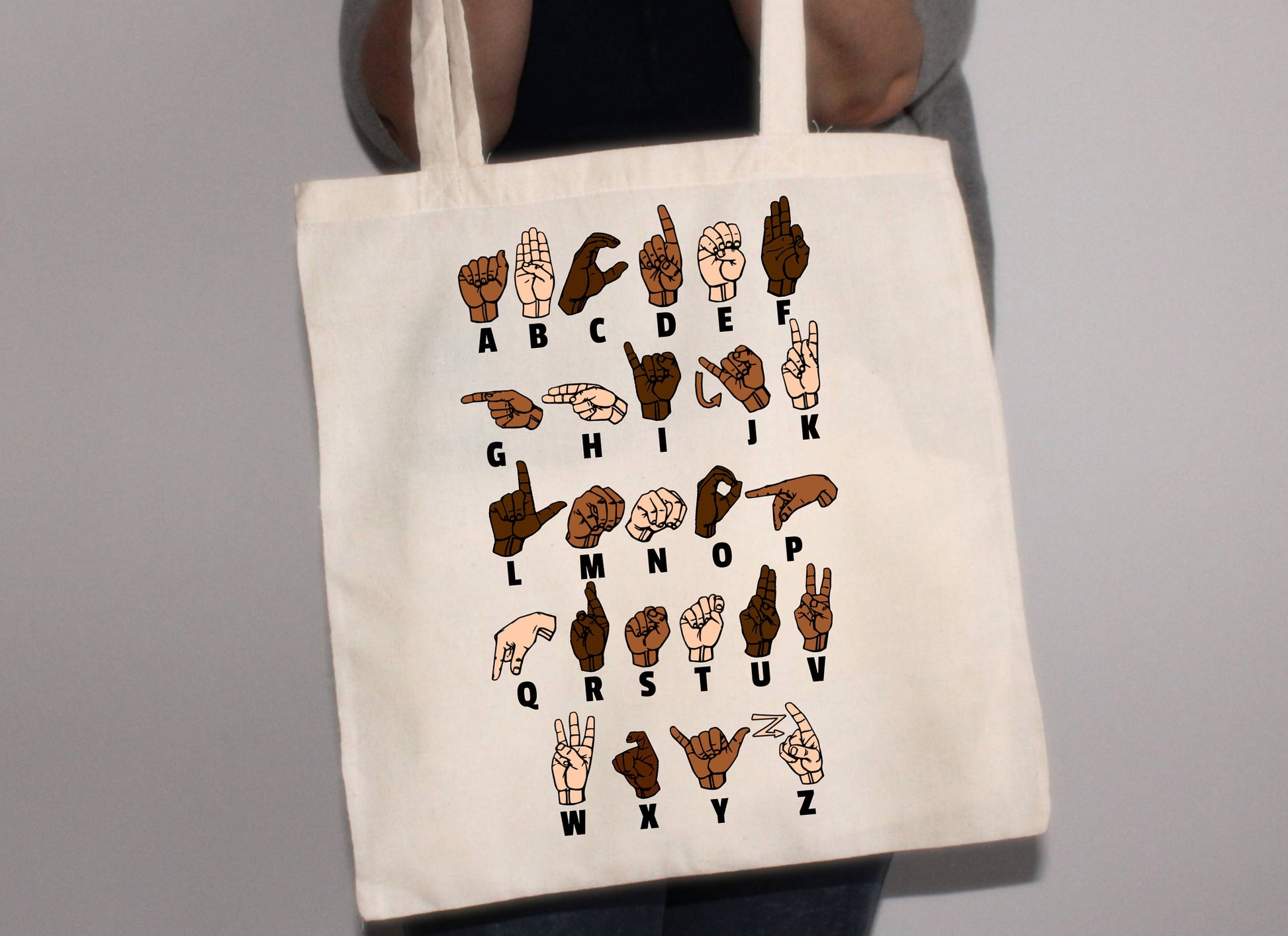 American Sign Language Alphabet Tote Bag | ASL Multi Color Bag | Sign Letters Bookbag School Canvas Bag